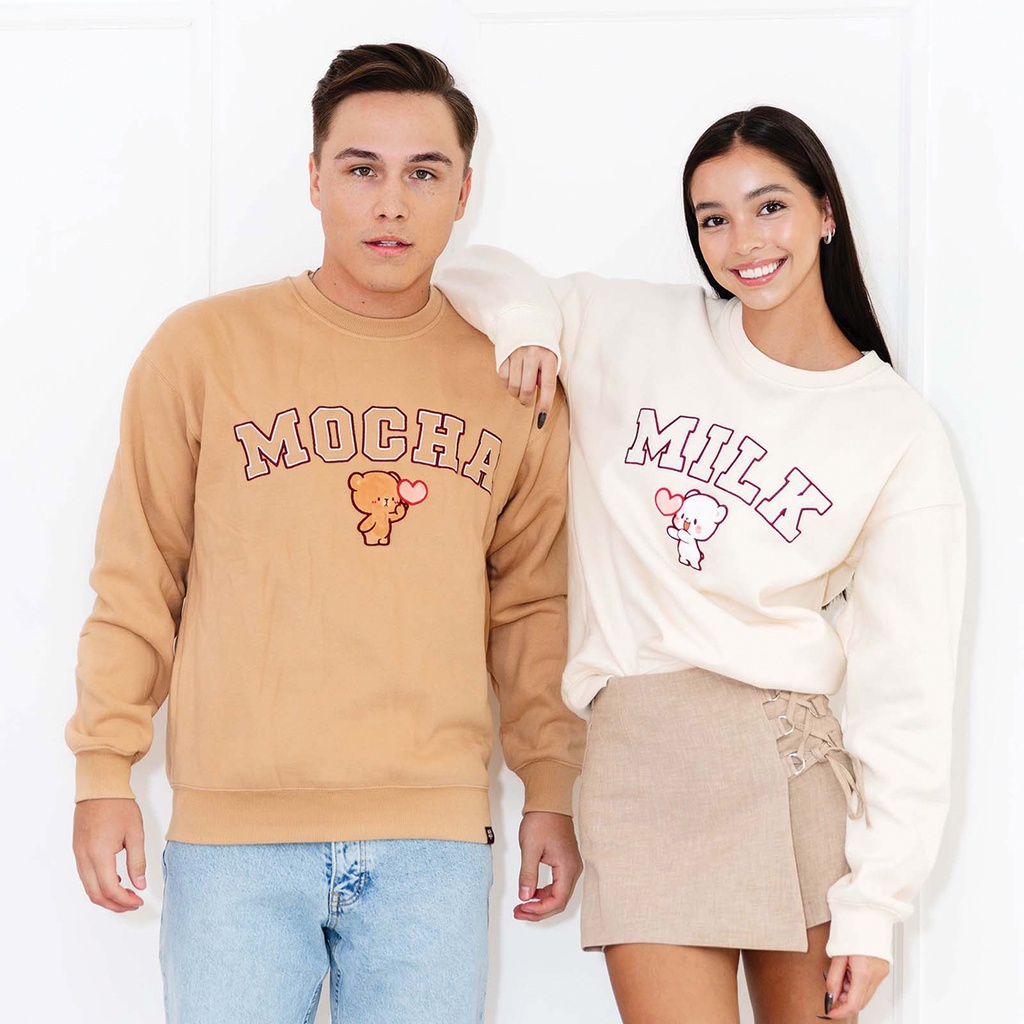 Milk Mocha Bear Varsity Crewneck - Milk